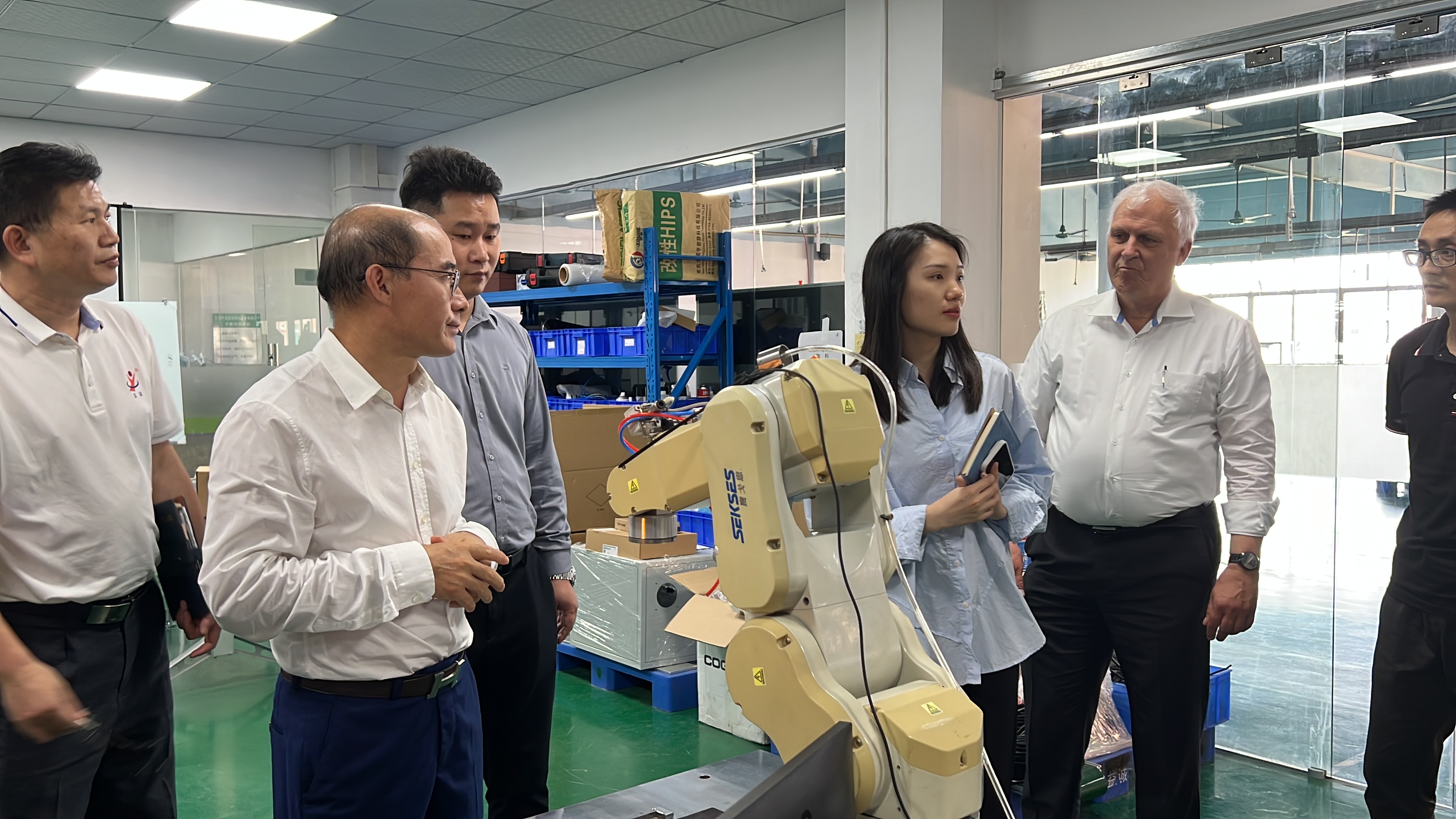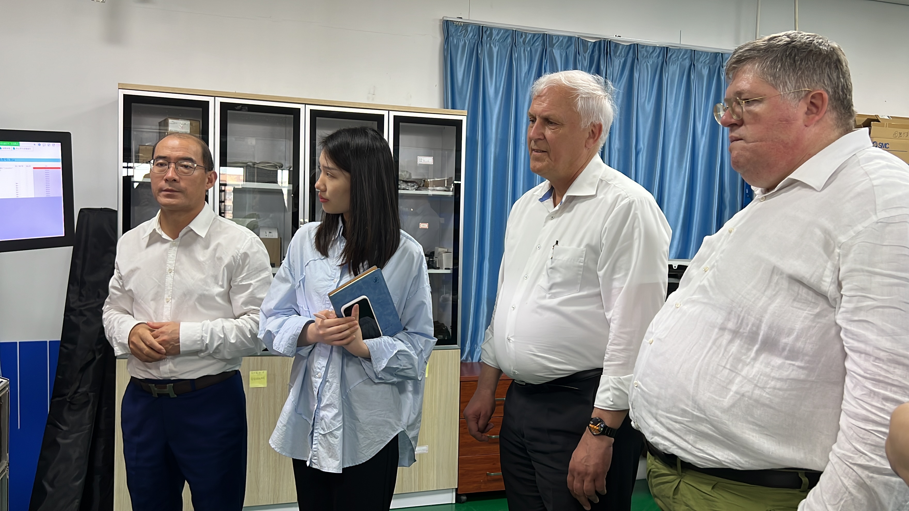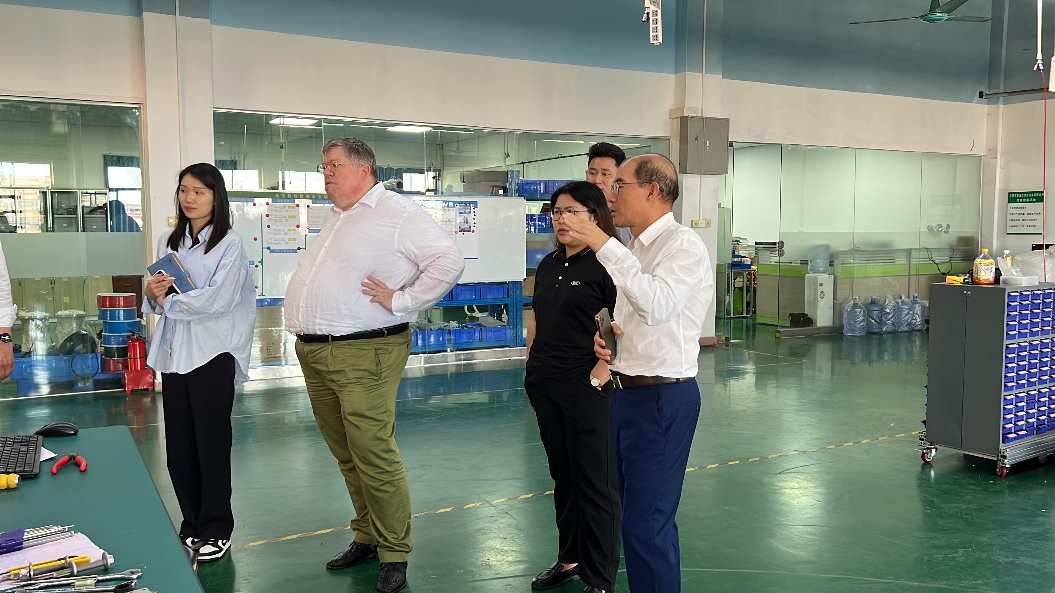 初次会面,袁振海董事长为BJB高层介绍了我司主营方向,并带领BJB高层团队参观我司车间,详细介绍了我司的设备及产品。